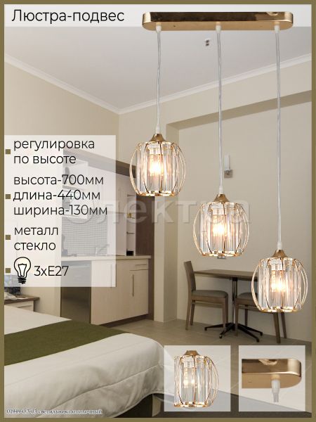 | Цвет плафона подвеса, спота: | Золото / Прозрачный |