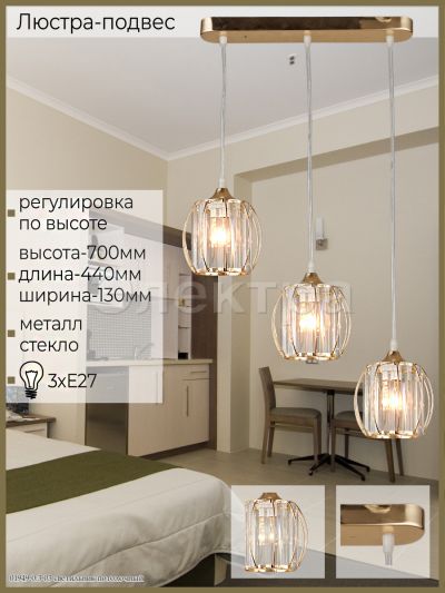 | Количество ламп подвеса, спота: | 3 |